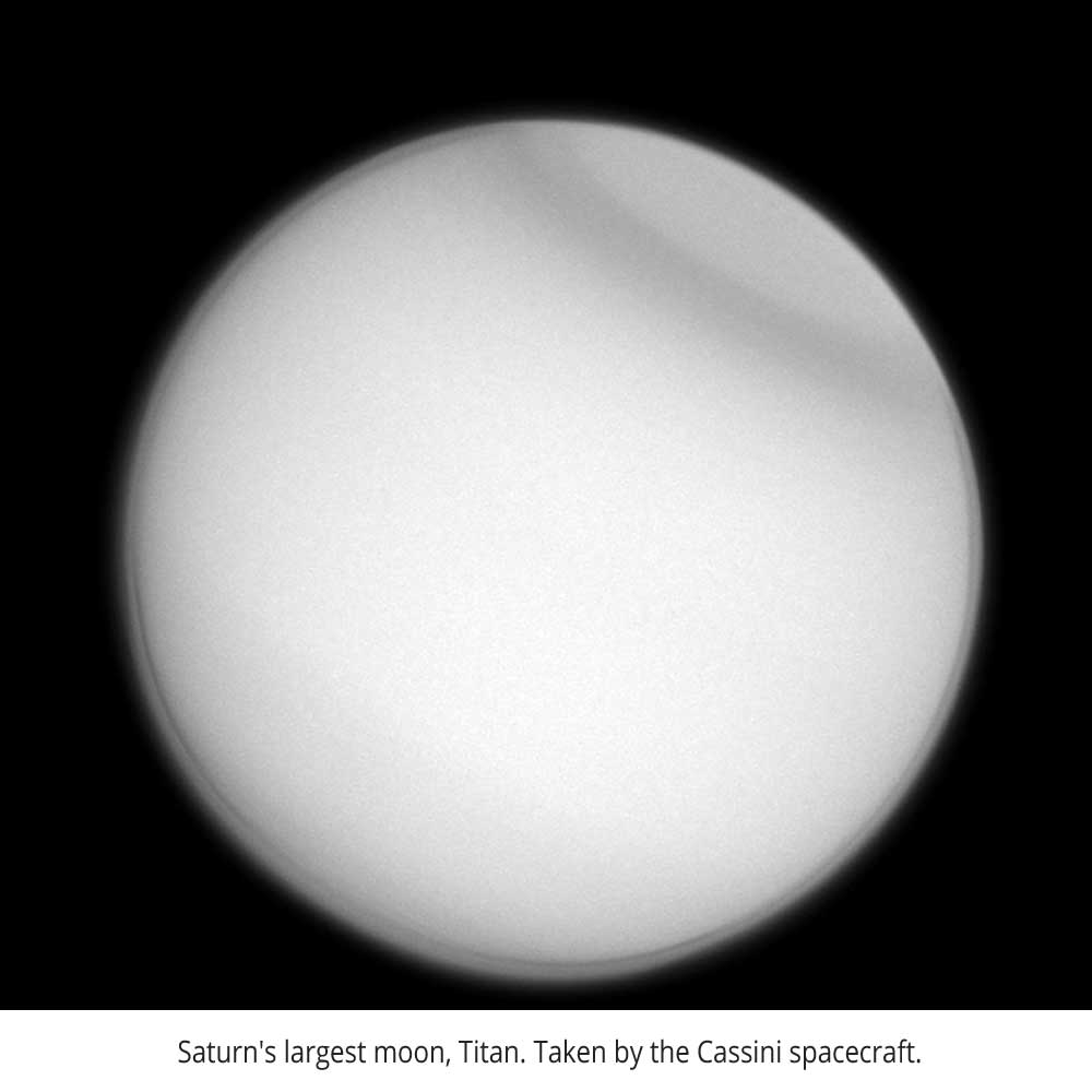 The largest of Saturn’s moons is called Titan. This is the second largest moon in the solar system (second only to Jupiter’s Ganymede) which is slightly larger than the planet Mercury. Titan is a fascinating moon in the sense that it has a think nitrogen based atmosphere that was likely similar to the atmosphere of a very young planet Earth.